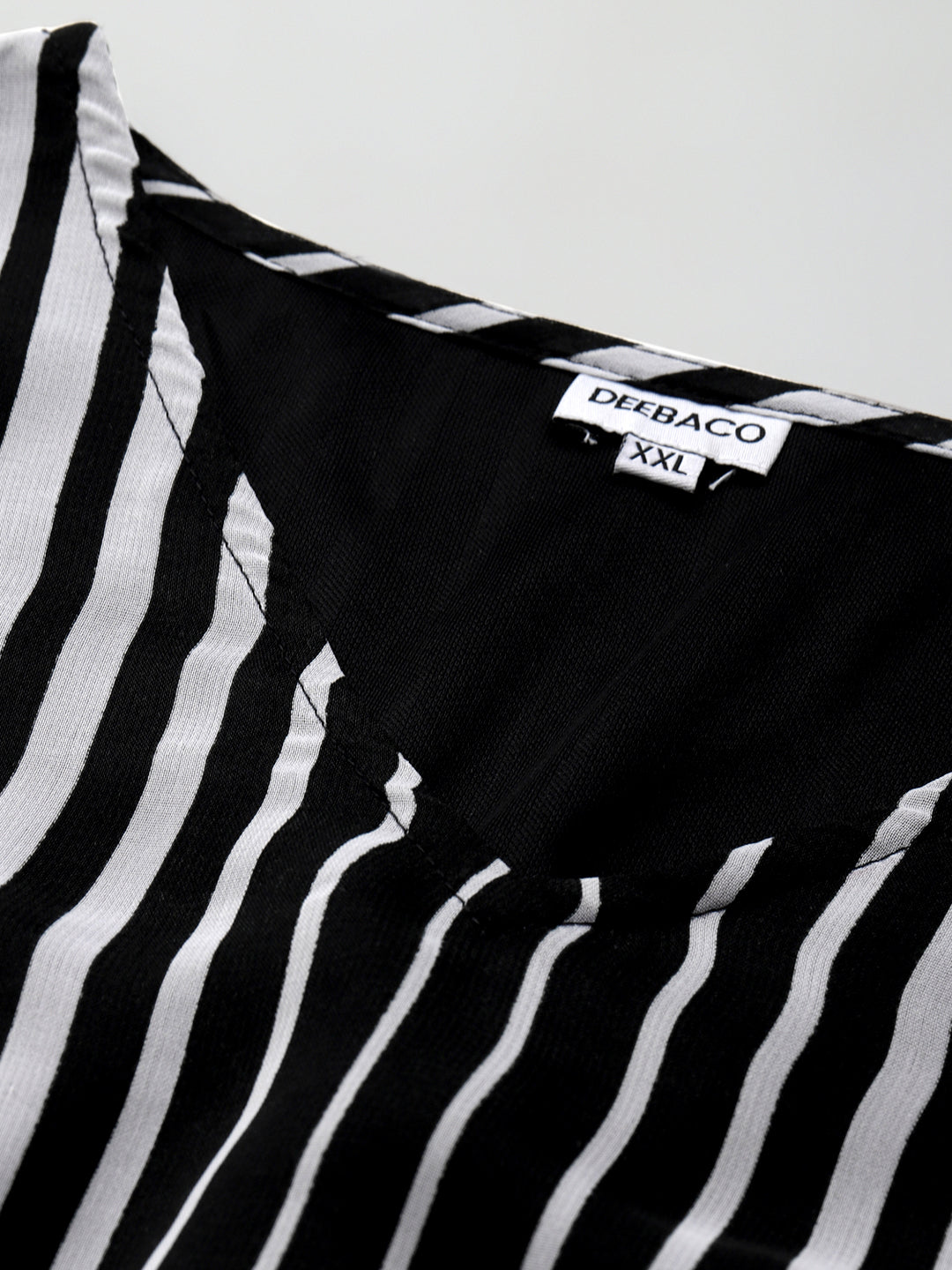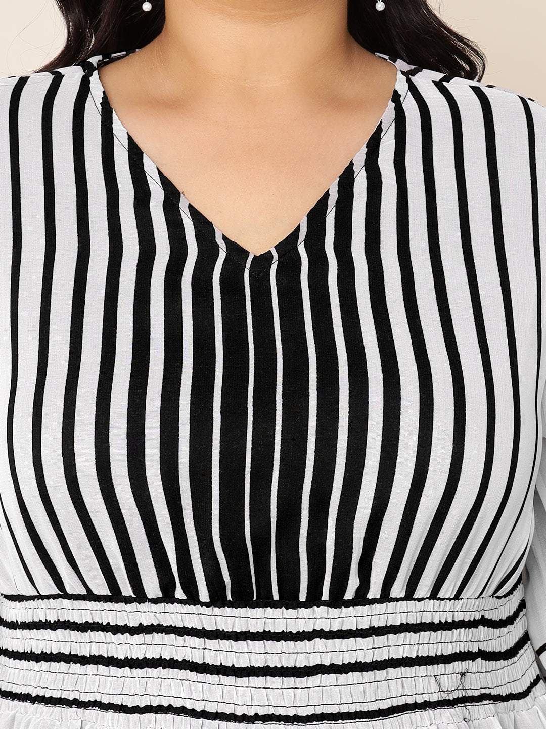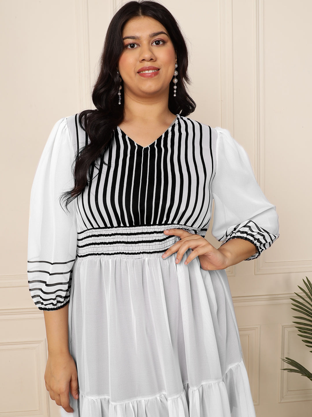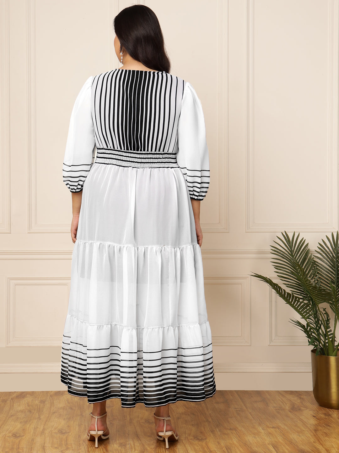 Women's Plus Size White Georgette Stripe Printed Tiered Maxi Dress