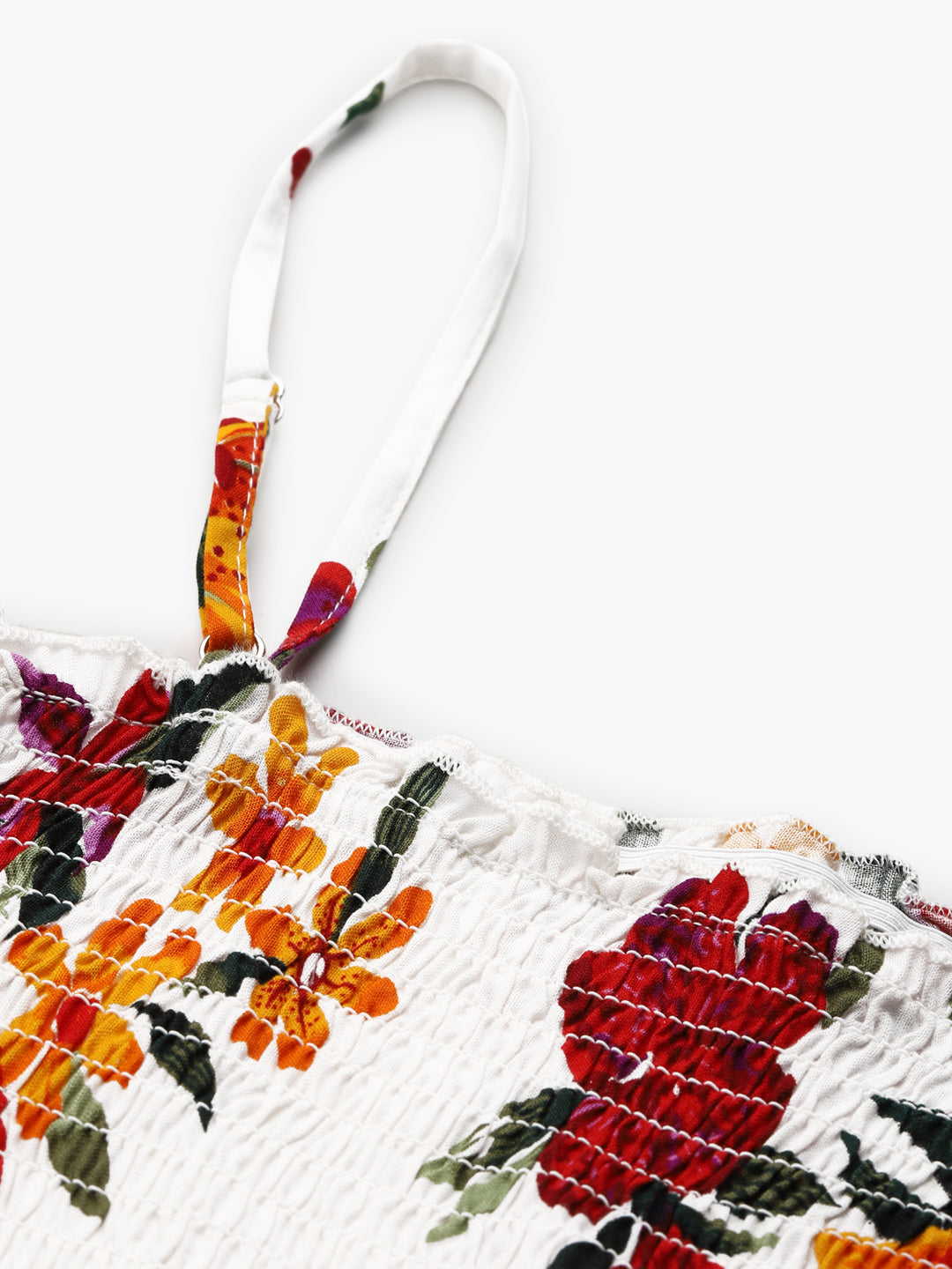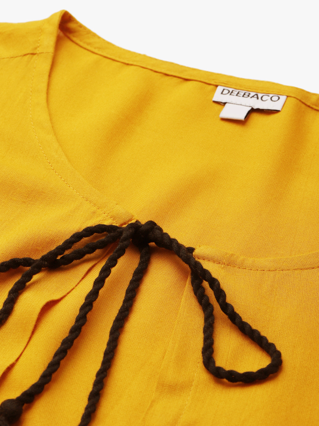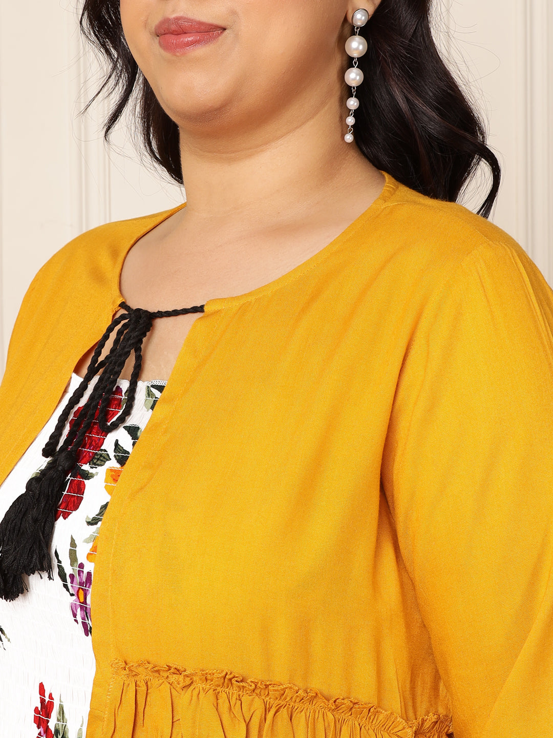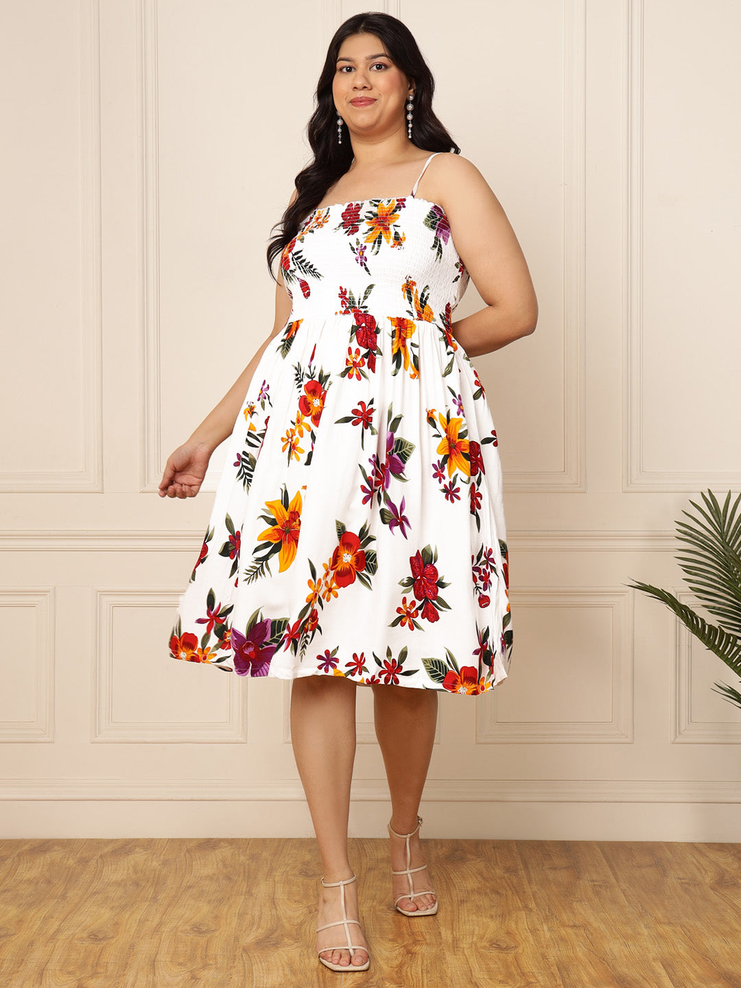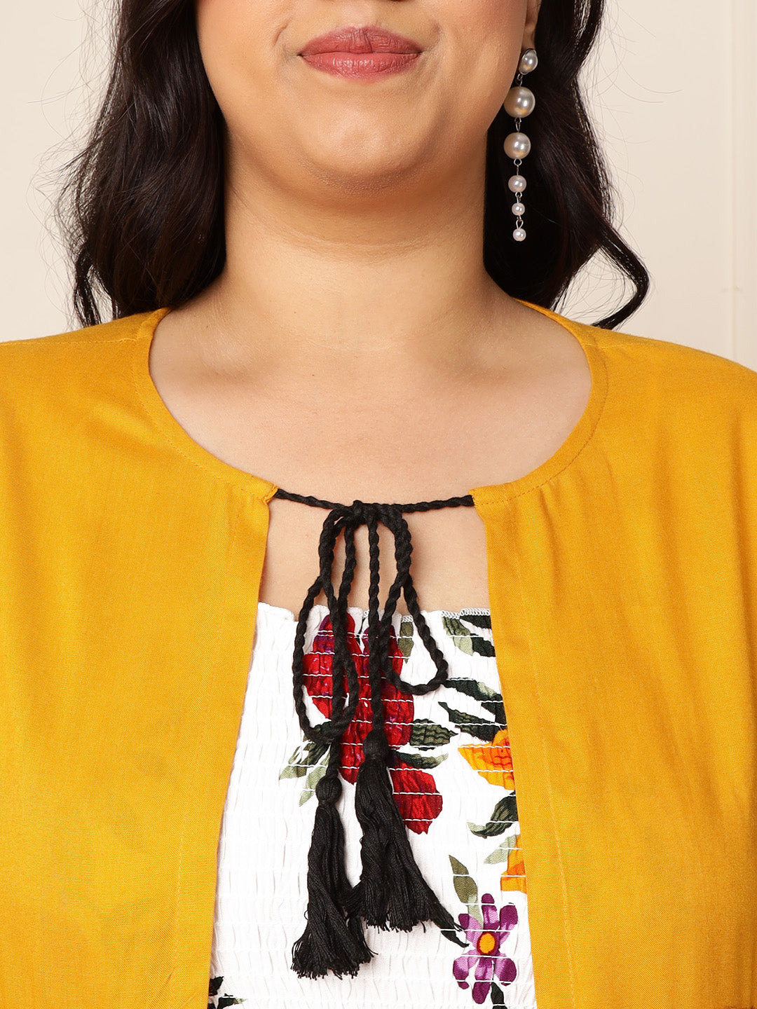 Women's Plus Size White Yellow Floral Tie-Up Neck Fit & Flared Dress
